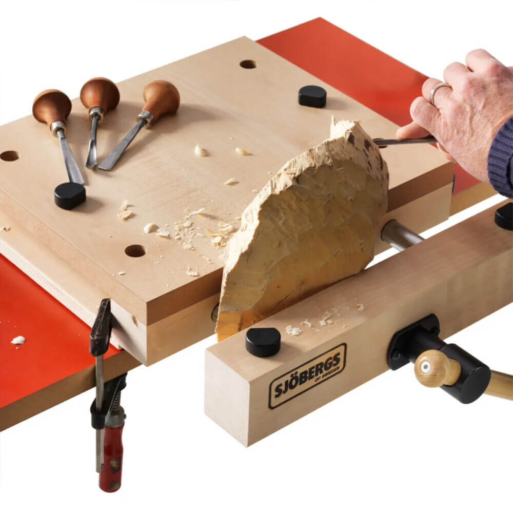 Nachrüstbare, tragbare Arbeitsfläche für Arbeiten im Atelier oder der Werkstatt. Eine schnelle Fixierung mit Zwingen ist möglich, alternativ kann die Arbeitsfläche auch an eine massive Tischplatte geschraubt werden.
