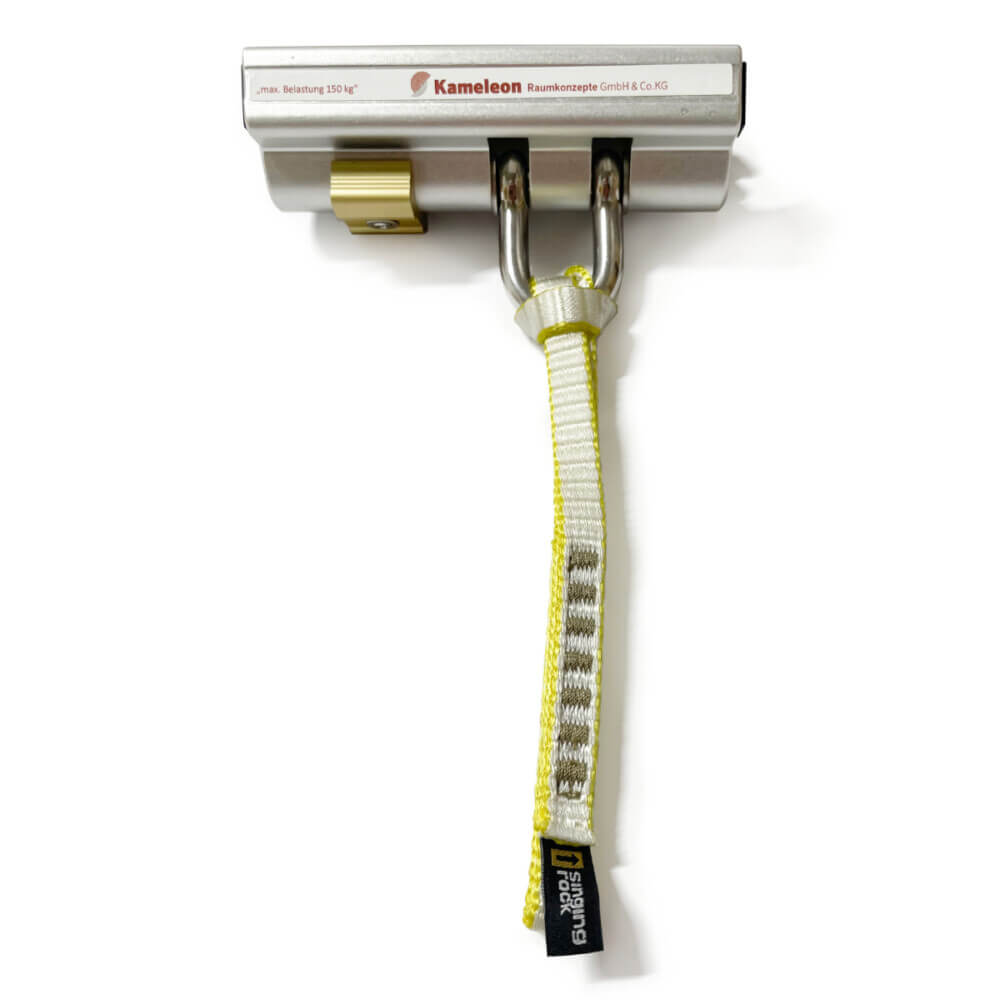 Metall- oder Edelstahlösen sollten grundsätzlich mit einer Bandschlinge vom anschließenden Sicherheitskarabiner entkoppelt werden, um den Abrieb an den Metallteilen durch Reibung von Metall auf Metall oder Stahl zu vermeiden.