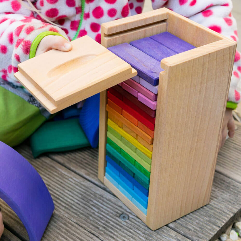 Hochwertige, sorgfältig hergestellte Holzbausteine aus guten Naturmaterialien sind ein pädagogisch sehr wertvolles und zeitloses Holzspielzeug für Kinder. Im fantasievollen, ruhigen Spiel der Kinder kann so aus den freien Formen immer Neues entstehen. Ganze Spielewelten, die zusammen mit Holztieren, Figuren, Dekorationstüchern und Naturmaterialien ausgebaut und kreativ erschaffen werden.