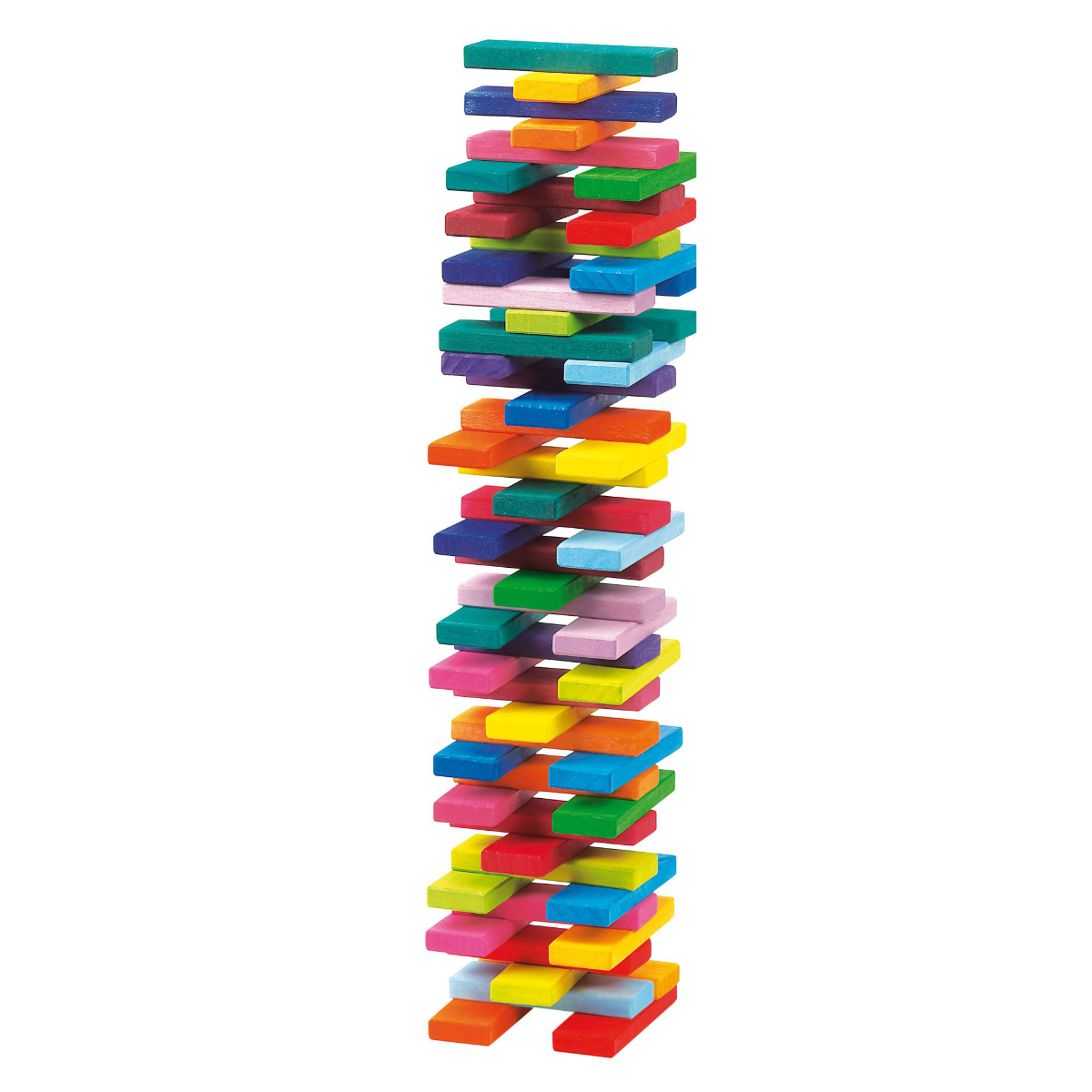 Baukasten mit 60 gleichgroßen Bauplättchen in 20 aufeinander abgestimmten Farben.