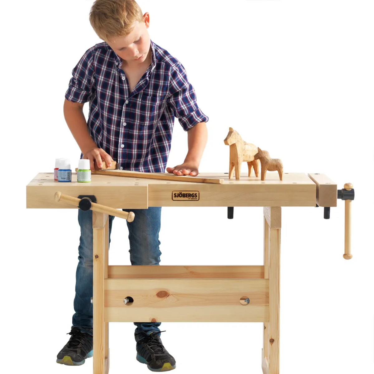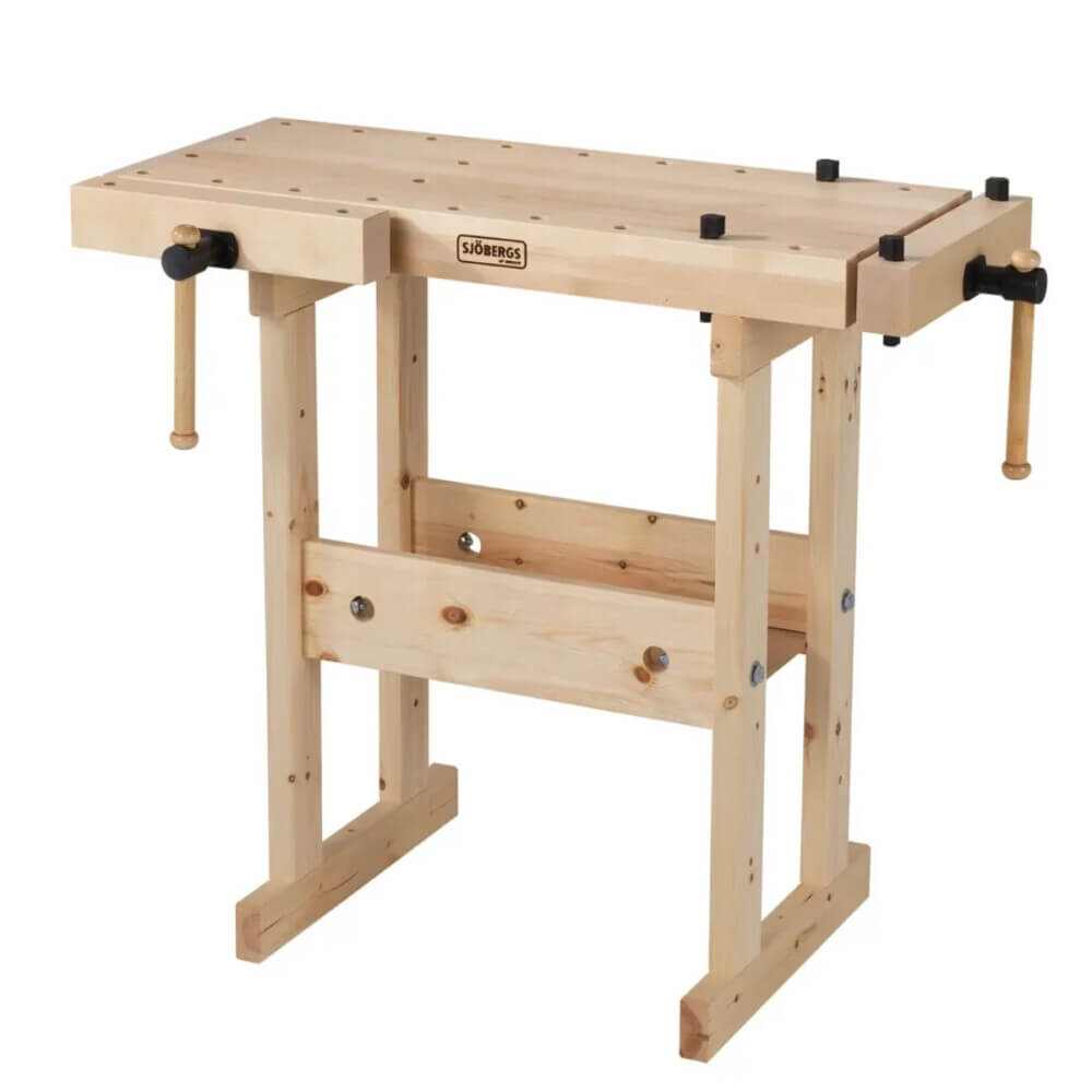 Die Hobelbank Junior Plus ist mit einer parallel spannenden Vorder- und Hinterzange für ein bis zwei Arbeitsplätze ausgestattet.