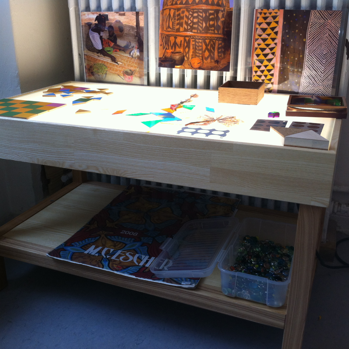 Leuchttische sind Experimentierorte für verschiedenes Legematerial oder alternative Zeichentische.