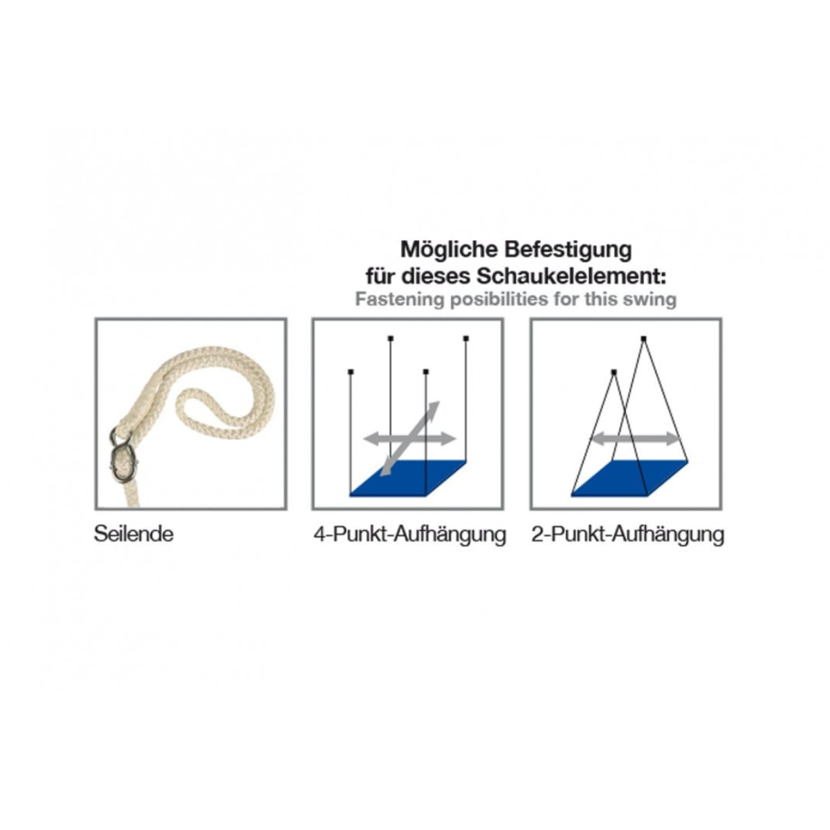 Befestigungen aus 14 mm Flechtleine weiß (4x 3.000 mm) mit integrierter Höhenverstellung.
