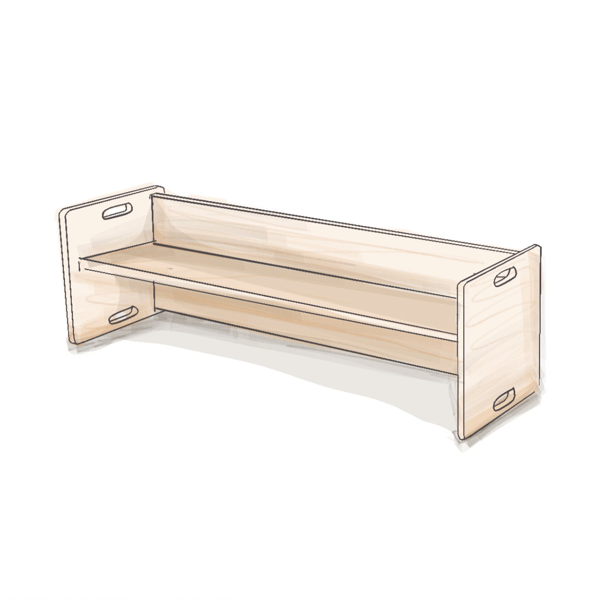 Jede Wendebank verfügt über zwei verschiedene Sitzhöhen. An den Seiten befinden sich jeweils zwei Grifflöcher um sie gut tragen und wenden zu können.