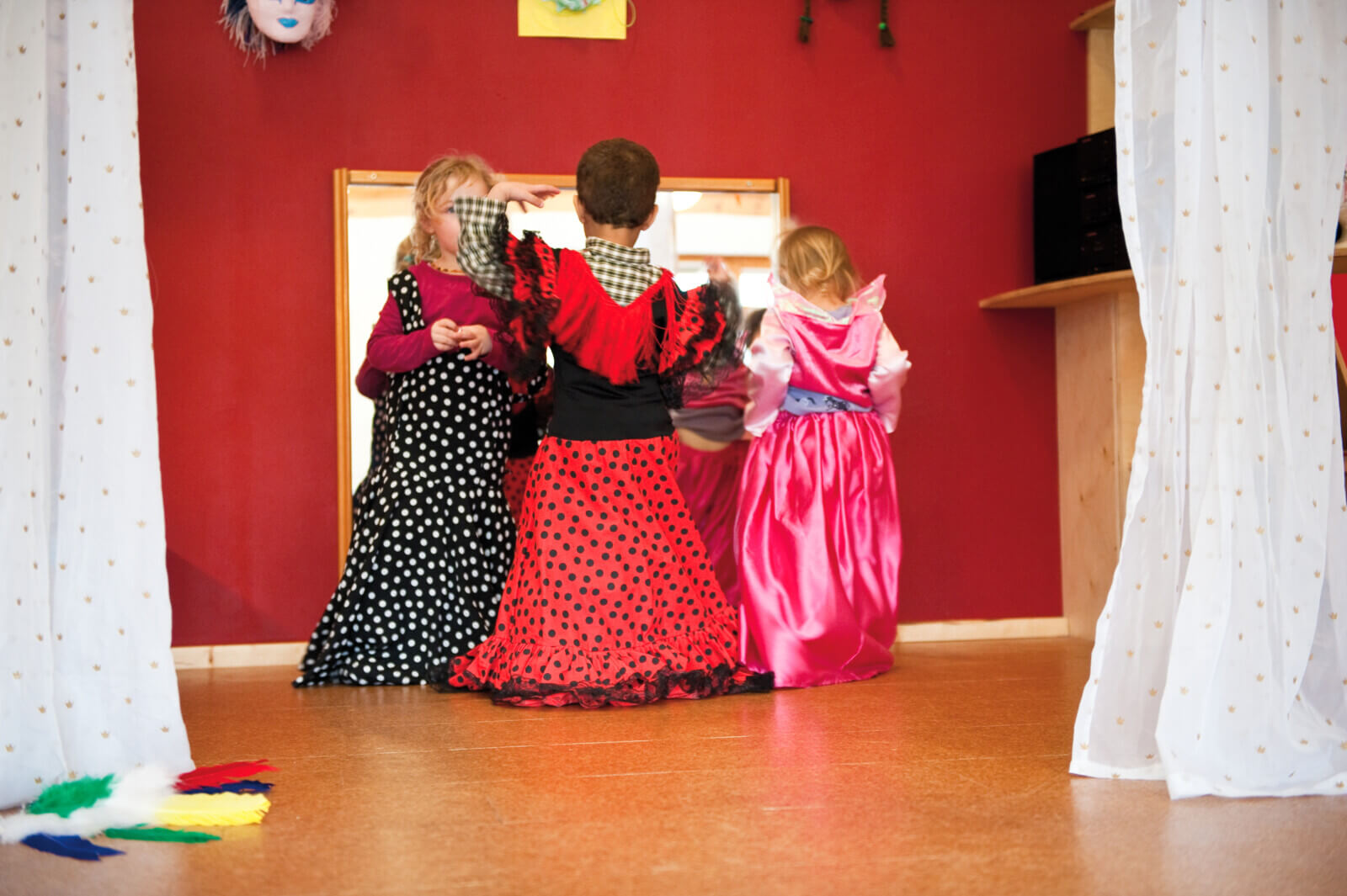 Es gibt viele pädagogische Funktionsbereiche, die zum Tanzen passen. Tanzen und Medien, Tanzen und Musik, Tanzen und Verkleiden, Tanzen und Entspannung. So wird der Raum zum Tanzen ein Raum, der den ganzen Tag spannende Tätigkeitsfelder bietet, die sich einander ergänzen.